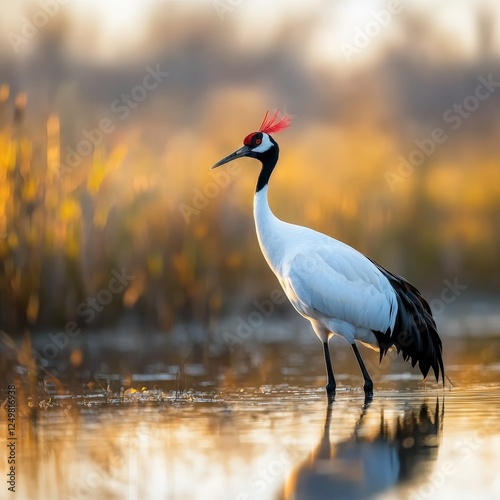© Petchladda, Naklejka premium Red-crowned crane standing majestically in a peaceful wetland