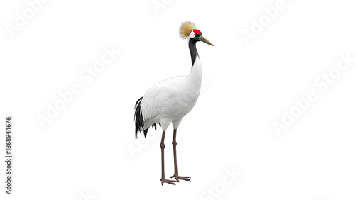 © rinadhamaulinairga, Obraz premium Red-crowned Crane Standing on White Background