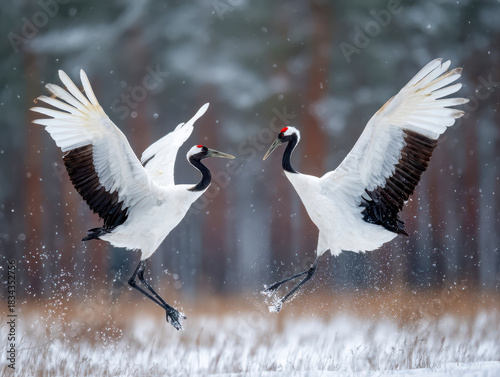 © outdoorsman, Fototapeta premium Red crowned cranes fight
