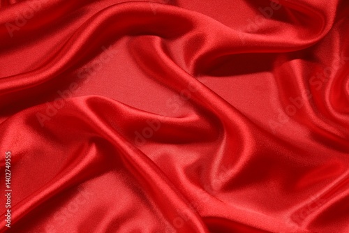 © New Africa, Obraz premium Red crumpled silk fabric as background, top view