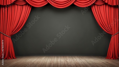© Jim Middlewoods, Fototapeta premium Red curtain on a stage. Black background.