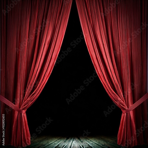 © Arber, Fototapeta premium red curtain opening on stage against black background
