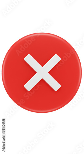 Fototapeta premium Red 3d Icon Cross Sign Delete Cancel Error Remove Symbol