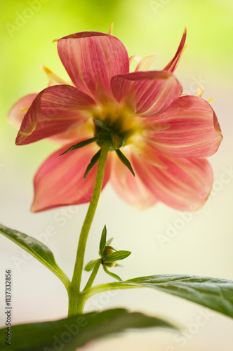 © MARIA, Fototapeta premium Red Dahlia Flower and a Bud Reaching Out