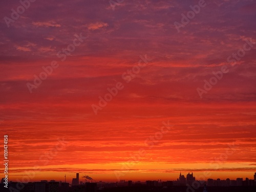 © Julia, Fototapeta premium red dawn over the city