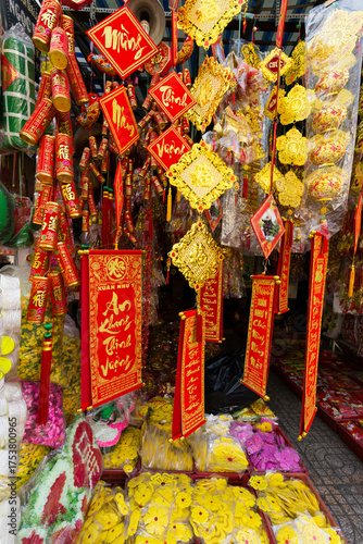Fototapeta premium Red decorations welcome Tet celebrations in Ho Chi Minh City Vietnam