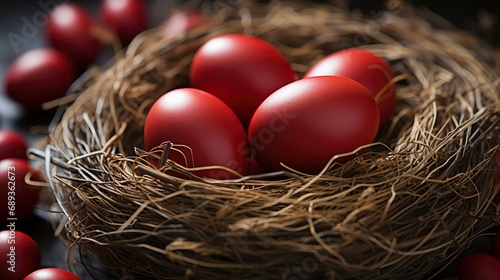Fototapeta premium Red Decorative Hearts Nest Bright Spring, Background Image, Desktop Wallpaper...