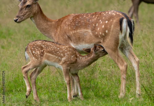 © Johan, Fototapeta premium Red deer calf drinking