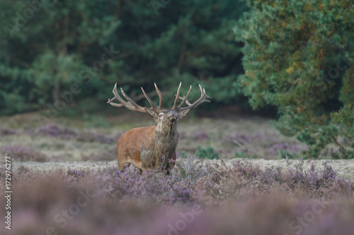 Naklejka premium Red deer in nice sunlight during mating season