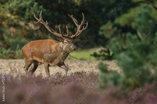 Naklejka premium Red deer in nice sunlight during mating season