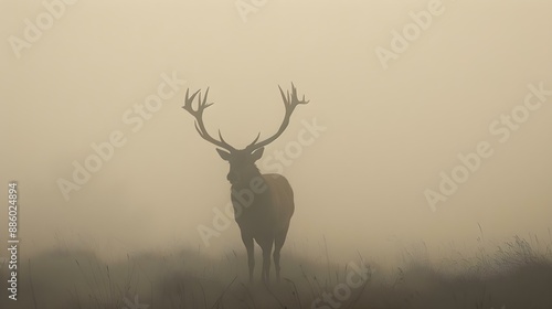 © daniel, Obraz premium Red deer stag silhouette in the mist