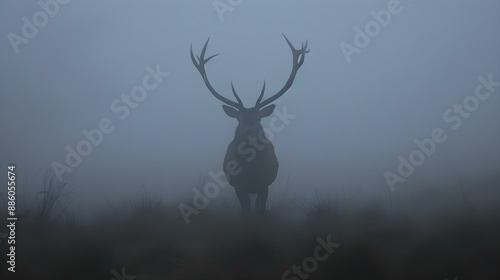 © daniel, Obraz premium Red deer stag silhouette in the mist