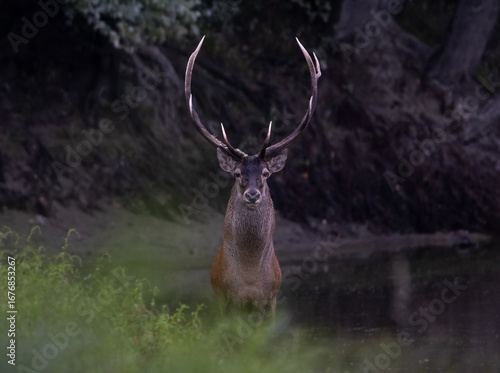 © Dusan, Fototapeta premium Red deer stag standing in front of camera