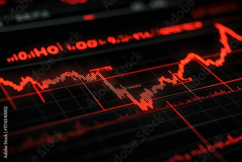 Fototapeta premium Red Digital Finance Stock Market Graph with Economic Data Visualization :...
