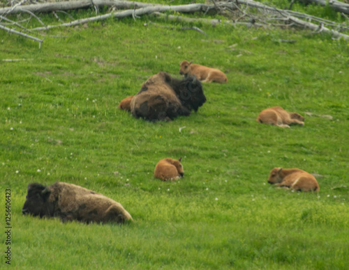 Fototapeta premium "Red Dog" recently born bison calves