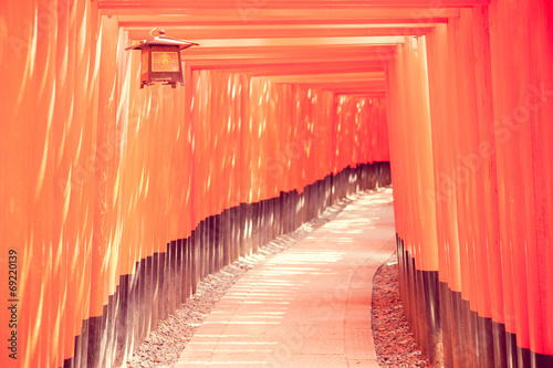 Fototapeta premium Red door named Torii in Fushimi Inari shrine, Kyoto, Japan in vi