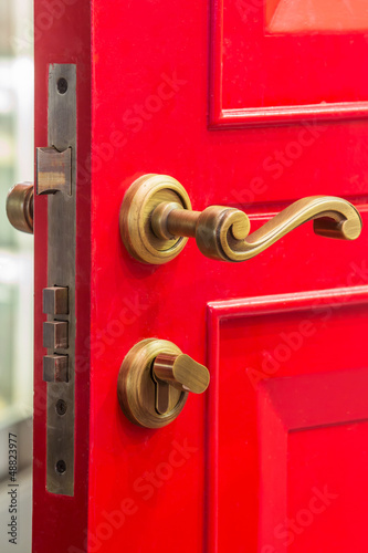 Obraz premium Red door with brass bolt