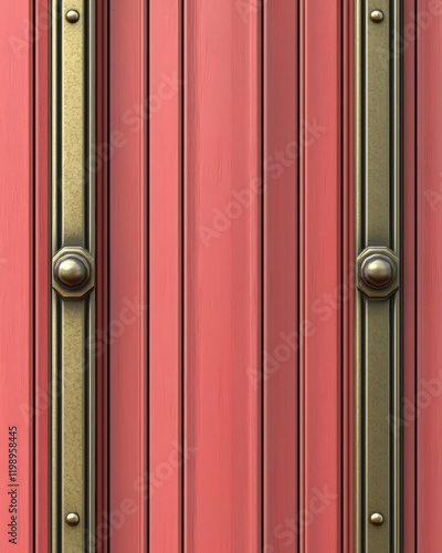 © Nob, Obraz premium Red door with gold vertical accents and knobs