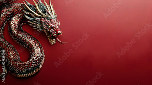 © Siasart Studio, Obraz premium Red Dragon Illustration on Red Background