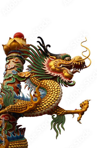 © nujalee, Naklejka premium Red dragon isolated on white background