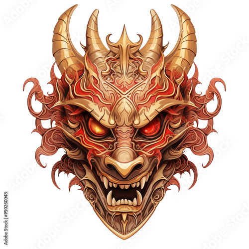 © AnyaPNG, Naklejka premium red dragon mask transparent background