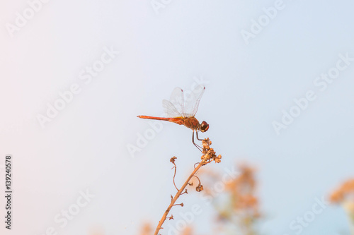 © weerasreesam, Obraz premium Red Dragonfly on brown tree