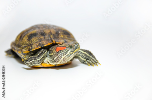 Obraz premium Red-Eared Slider Tortoise isolated on white background