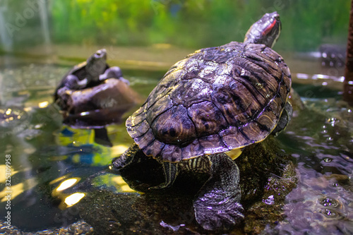Fototapeta premium Red-eared turtle sliders in the terrarium