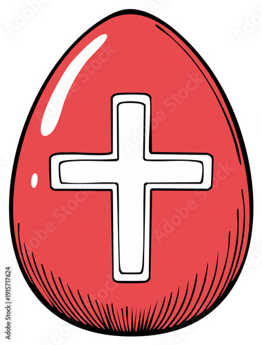 © Андрій О., Fototapeta premium Red Easter Egg with Cross Decoration Christian Symbol