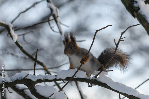 © Alexey Seafarer, Obraz premium Red eurasian squirrel in winter park