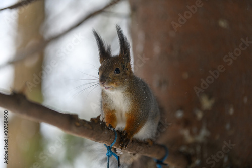 Fototapeta premium Red eurasian squirrel in winter park