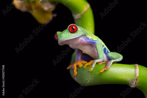 © davemhuntphoto, Obraz premium Red-Eyed Amazon Tree Frog (Agalychnis Callidryas) / Red-Eyed Amazon Tree Frog na skręconym bambusie