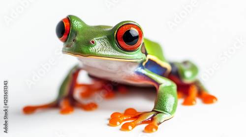 © mizan, Fototapeta premium Red-eyed frog isolated on a grey background