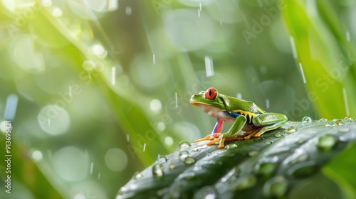 © Umi Sakina, Naklejka premium Red-Eyed Tree Frog in the Rain