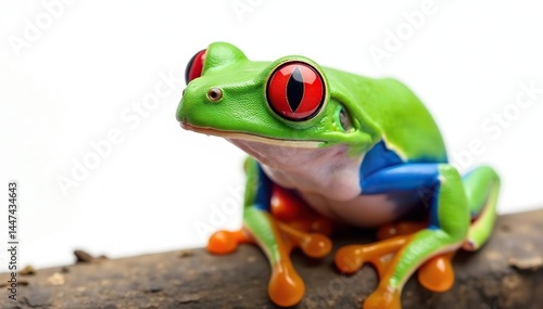 Obraz premium Red-eyed tree frog, isolated against pure white, nocturnal, copy space