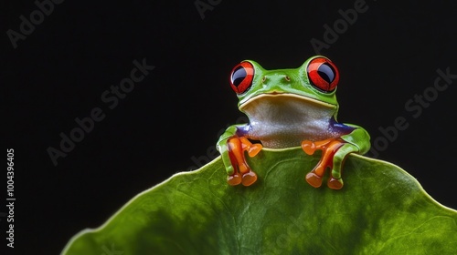 © adha, Fototapeta premium Red-Eyed Tree Frog on a Leaf
