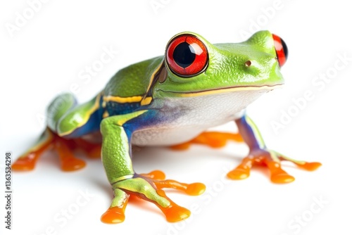 © El Media, Obraz premium Red-eyed Tree Frog Sitting Isolated on White Background Close-up