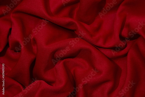 © Jalpa Malam, Obraz premium Red fabric background. Selective focus. Red cloth waves background texture.