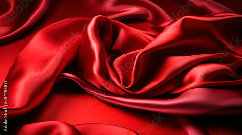 Obraz premium red fabric silk background with pleats. Texture of satin cloth. Generative AI