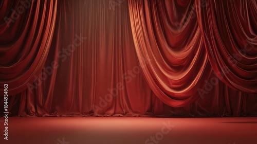 © Nami Liu, Fototapeta premium Red fabric theater curtains rendered on a plain white background, creating a dramatic and elegant 3D effect