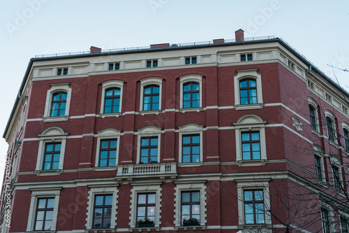 © Novanture, Fototapeta premium red facaded corner house at berlin