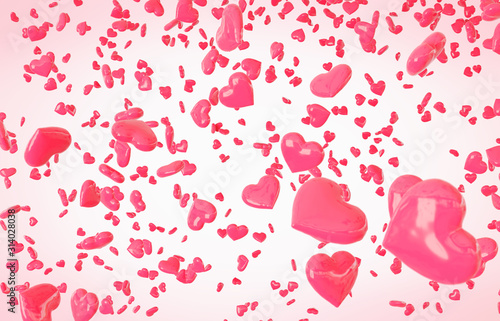 © sdecoret, Obraz premium Red falling hearts Valentine day background