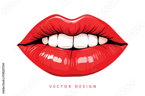 © krissikunterbunt, Obraz premium red female lips minimalist vector design isolated illustration