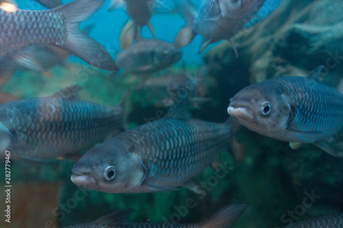 Fototapeta premium Red-finned cigar shark in fish tank.