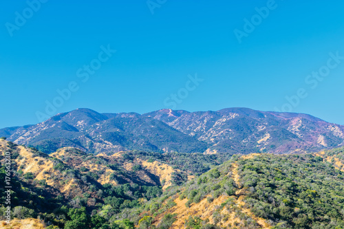 © Tim, Fototapeta premium Red fire retardant hills in the backgroun