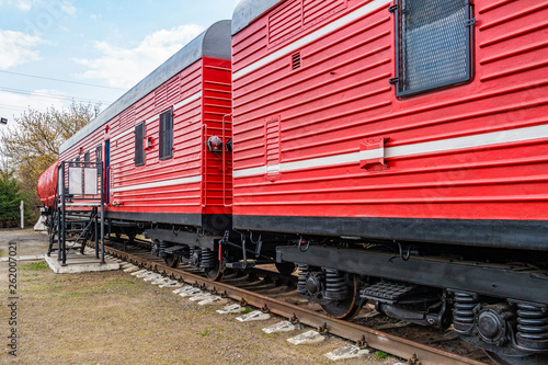 © perekotypole, Obraz premium Red fire train on the track.