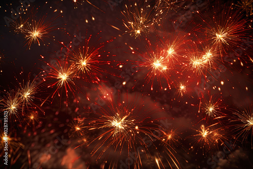 © Alexandra, Naklejka premium Red Fireworks in the Night Sky