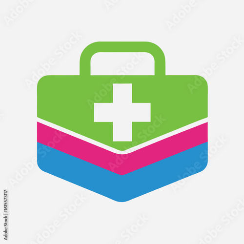 Obraz premium Red First Aid Box Logo with White Cross Medical Symbol Design