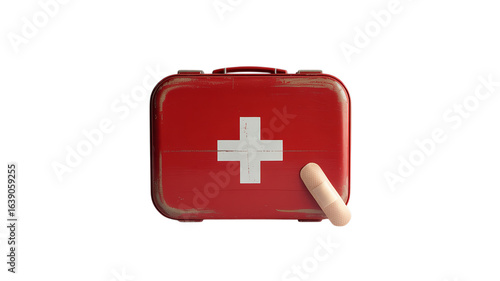 © DEEPAK, Obraz premium Red first aid kit box isolated on white background.