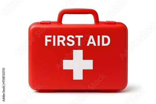 Obraz premium red first aid kit box isolated on white background